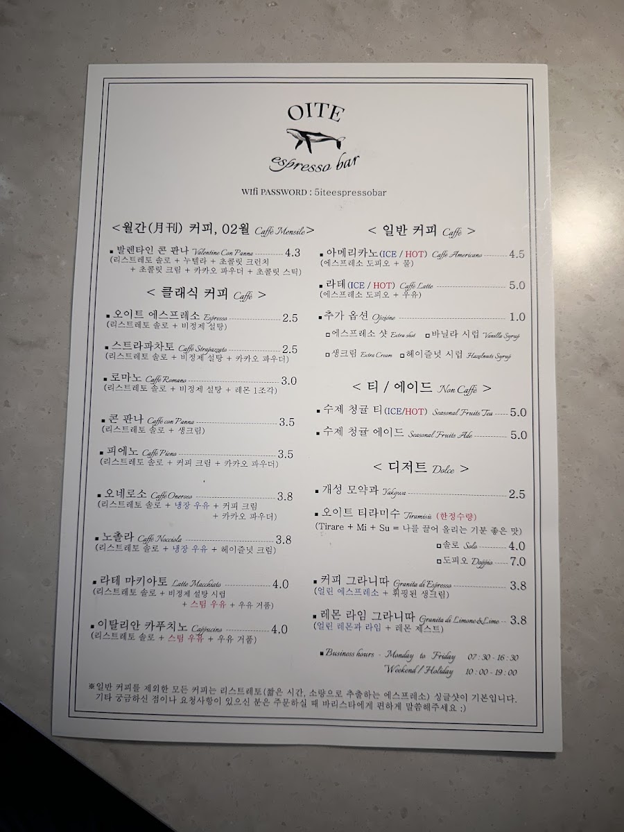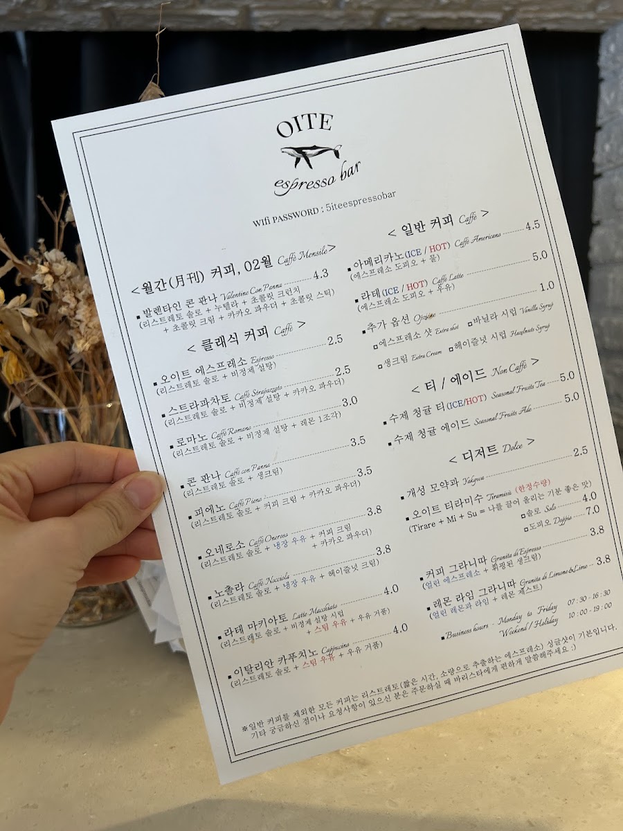 The menu at Oiteu is a veritable playground for espresso enthusiasts. Customers have fallen in love with the variety offered, including standout items like the rich Espresso, the seasonal Monthly Special Coffee, and the decadent Chocolat. Many guests highlight the Stracciatella—a delightful blend of flavors that showcase the café's commitment to crafting exquisite coffee. The experience is heightened with every sip, as the espresso is described as less bitter than expected, leaving a clean finish that invites you to savor even more.